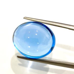 本日は爽やかなブルーとぷるんとした艶感が目を引く、カボションのスイスブルートパーズのルースをご紹介致します。