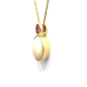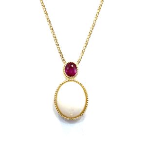 バチカン部分に配置したルビーはとても愛らしく、ミル打ちにしたイエローゴールドの地金の上品さとマッチしております。