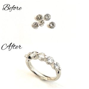ダイヤのルース(裸石)5ピースをお持ちくださったお客様です。合計で0.996ctございました。