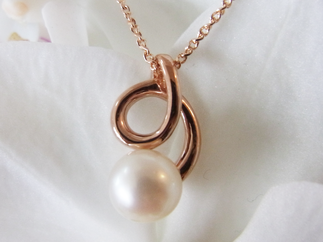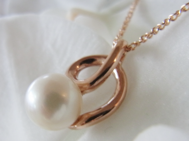 特に、日本人の肌合いにあったパールをあしらうにはぴったりの素材です。当店でも人気のデザイン枠に合わせると、カジュアルに使えるペンダント、それでいて大人の女性のならではの可愛らしさに溢れたジュエリーに仕上がりました。