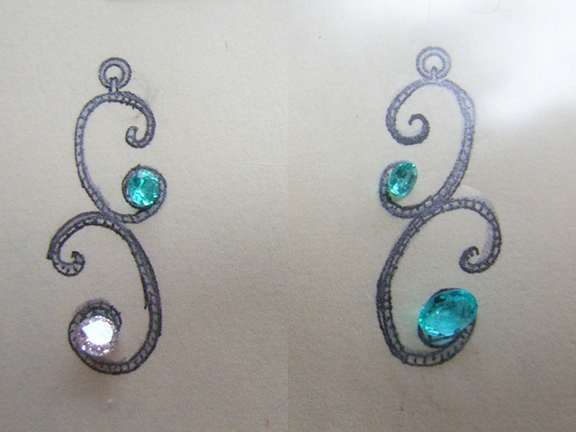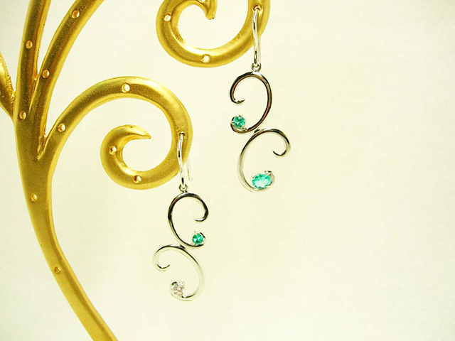 そんなデザインを選んだのも、実は、三粒のパライバトルマリンを、バランス良くピアスとして仕上げるためでした。