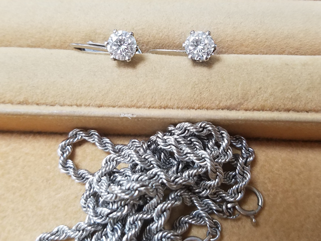 ご子息様が結婚をする事になり、ダイヤモンドイヤリングを婚約指輪と一粒ダイヤネックレスにリフォーム致しました。