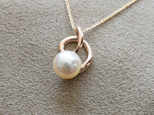 地金のお色は肌馴染みのよいピンクゴールドです。パールは『汗に弱い』と言われ、日常使いするジュエリーにはパールジュエリー をお避けになる方が多いと思いますが、