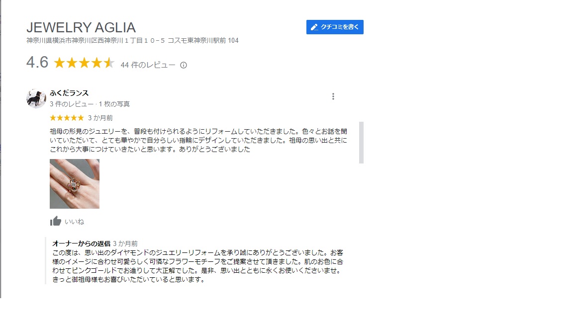 口コミ投稿までいただきました位お気入りだそうです。毎日肌身離さずお着けになっているそうです。