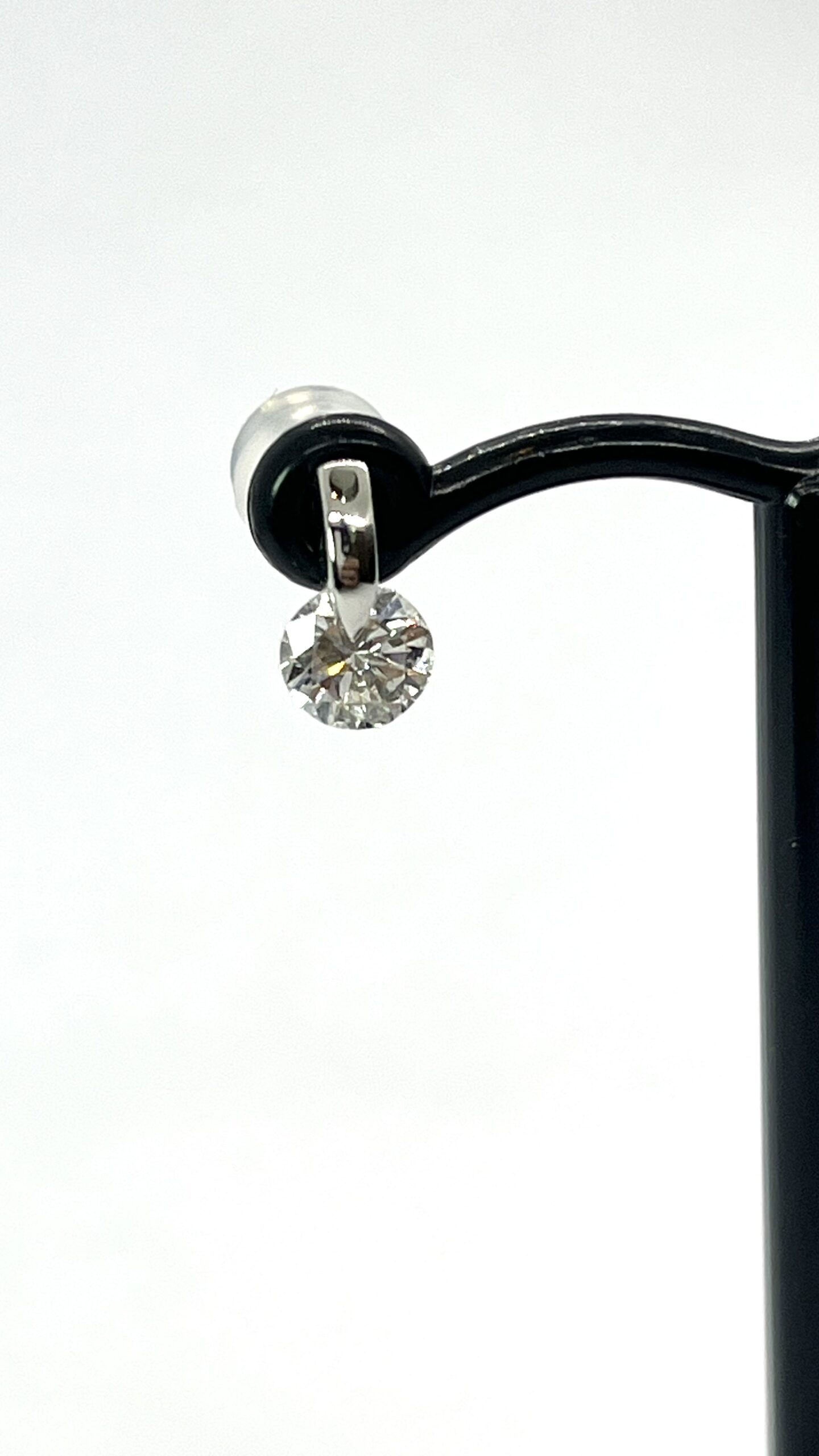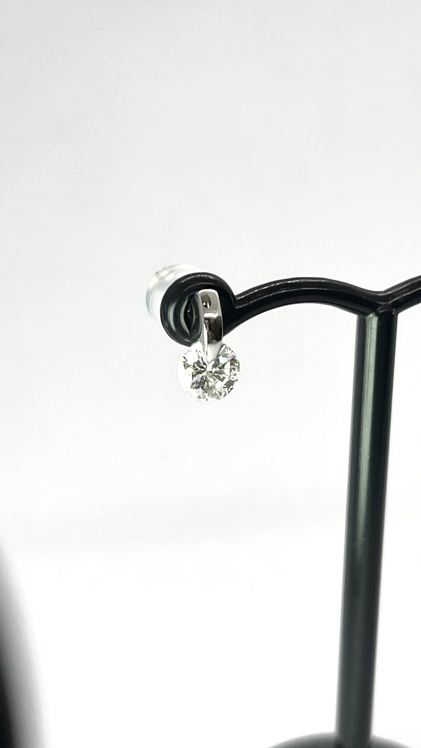 片方で0.4ctありトータルで0.8ctの一粒デザインのイヤリングを1点留めピアスにジュエリーリフォームしました。1点留めは、シンプルでお石の輝きを最大限に引き出せるデザインですが注意点もあります。