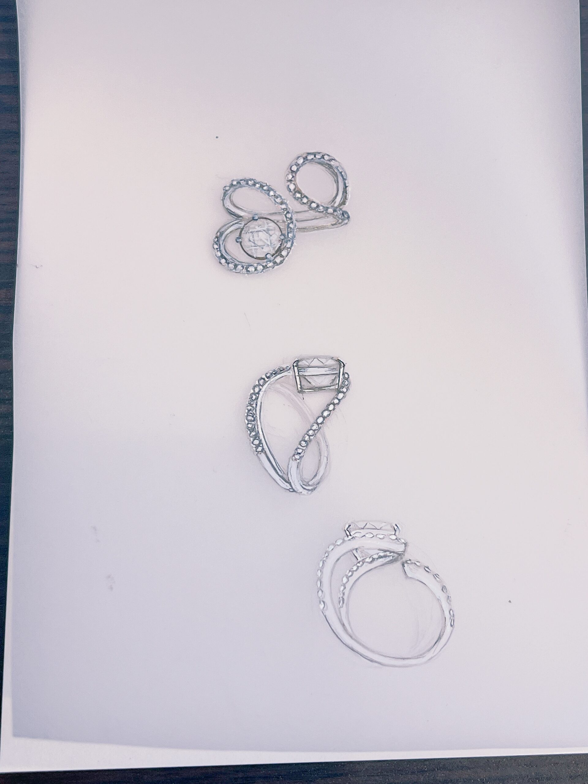 そして、お客様ご自身が非常にジュエリーをお使い慣れていらっしゃっておりましたので今までお持ちでないタイプのデザインでしたがきっと使いこなしていただけると思い今回のデザインをご提案いたしました。