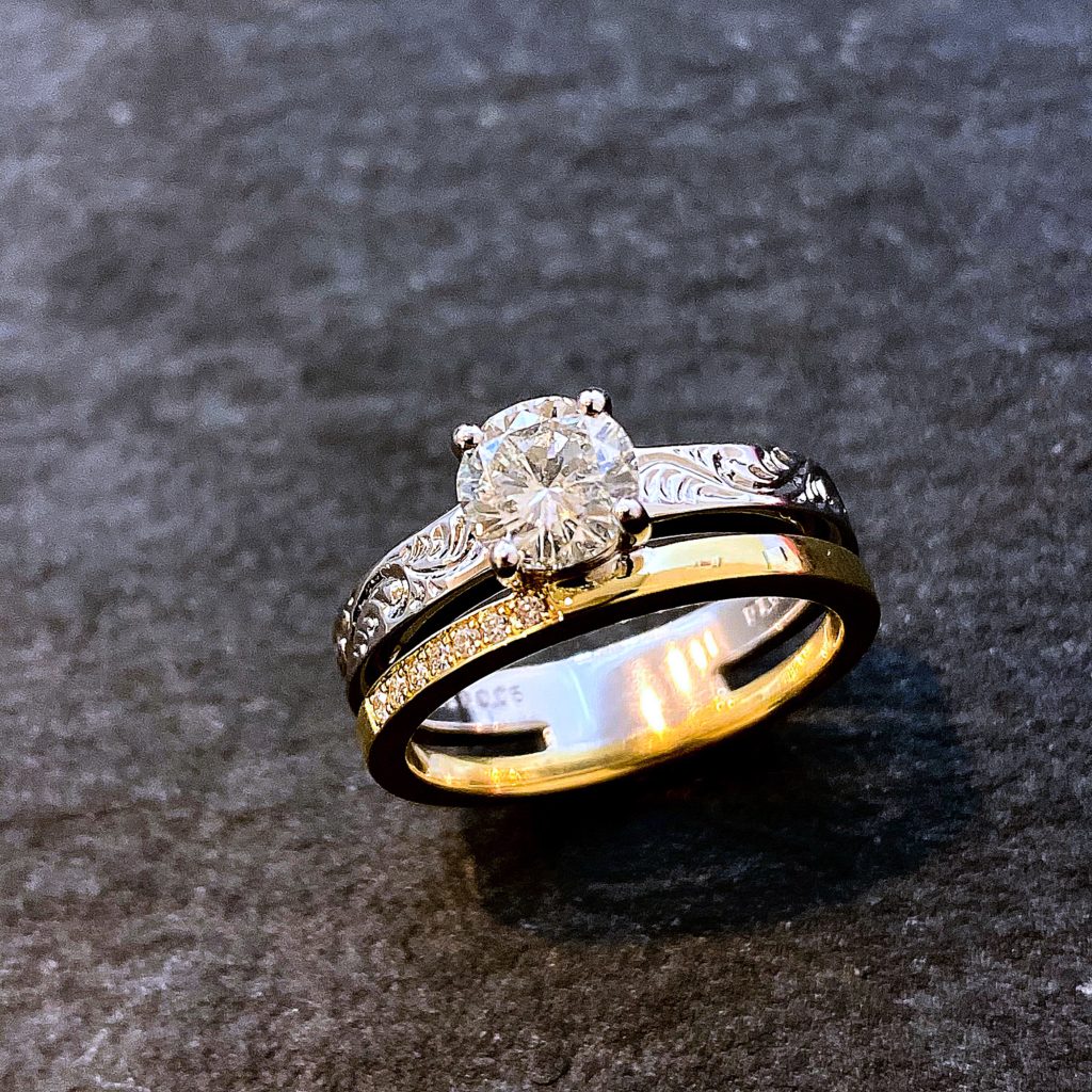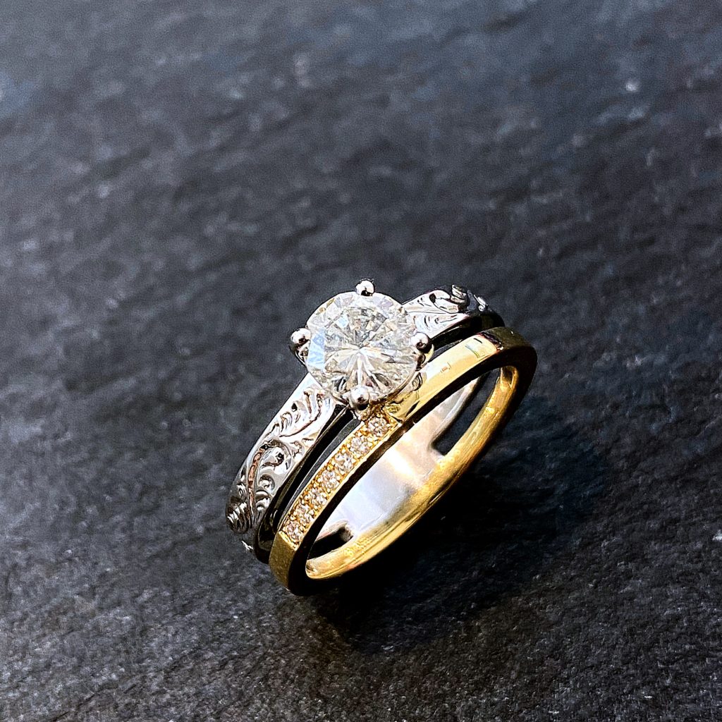 少しカチっとしたラインのフォルムのリングをご提案いたしました。