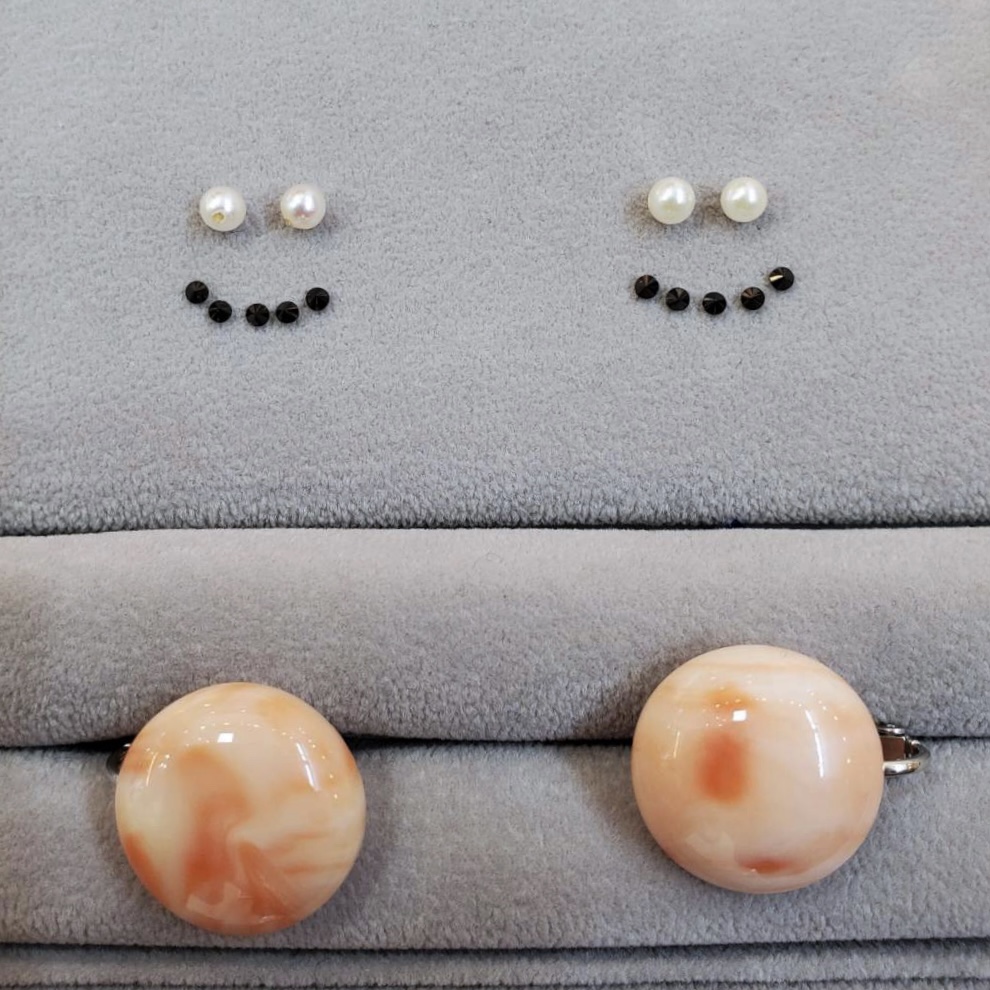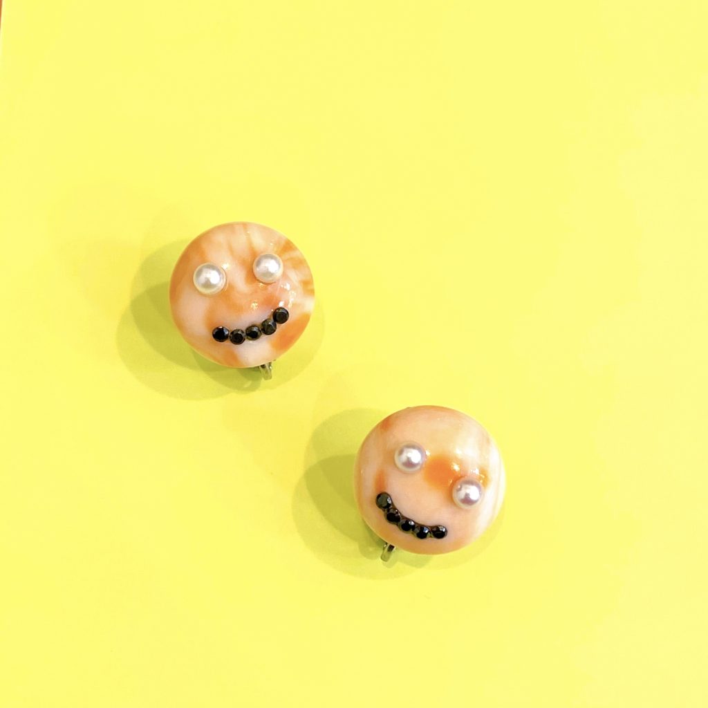 可愛らしいニコちゃんのイヤリングが出来上がりました。これならお客様も身につけてくれるはず♪