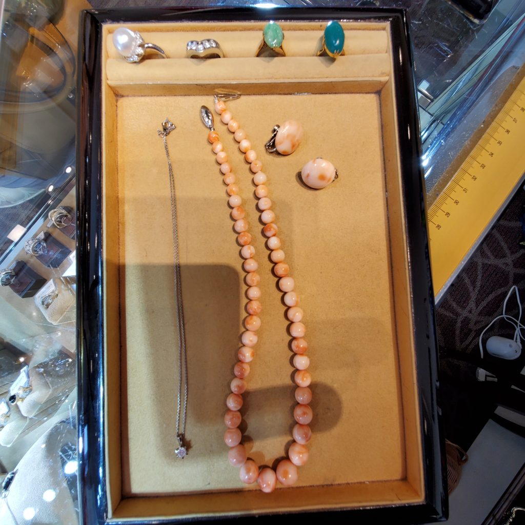 その中のおひとつの珊瑚のネックレス 「かわいい色だけど付けない」と。。