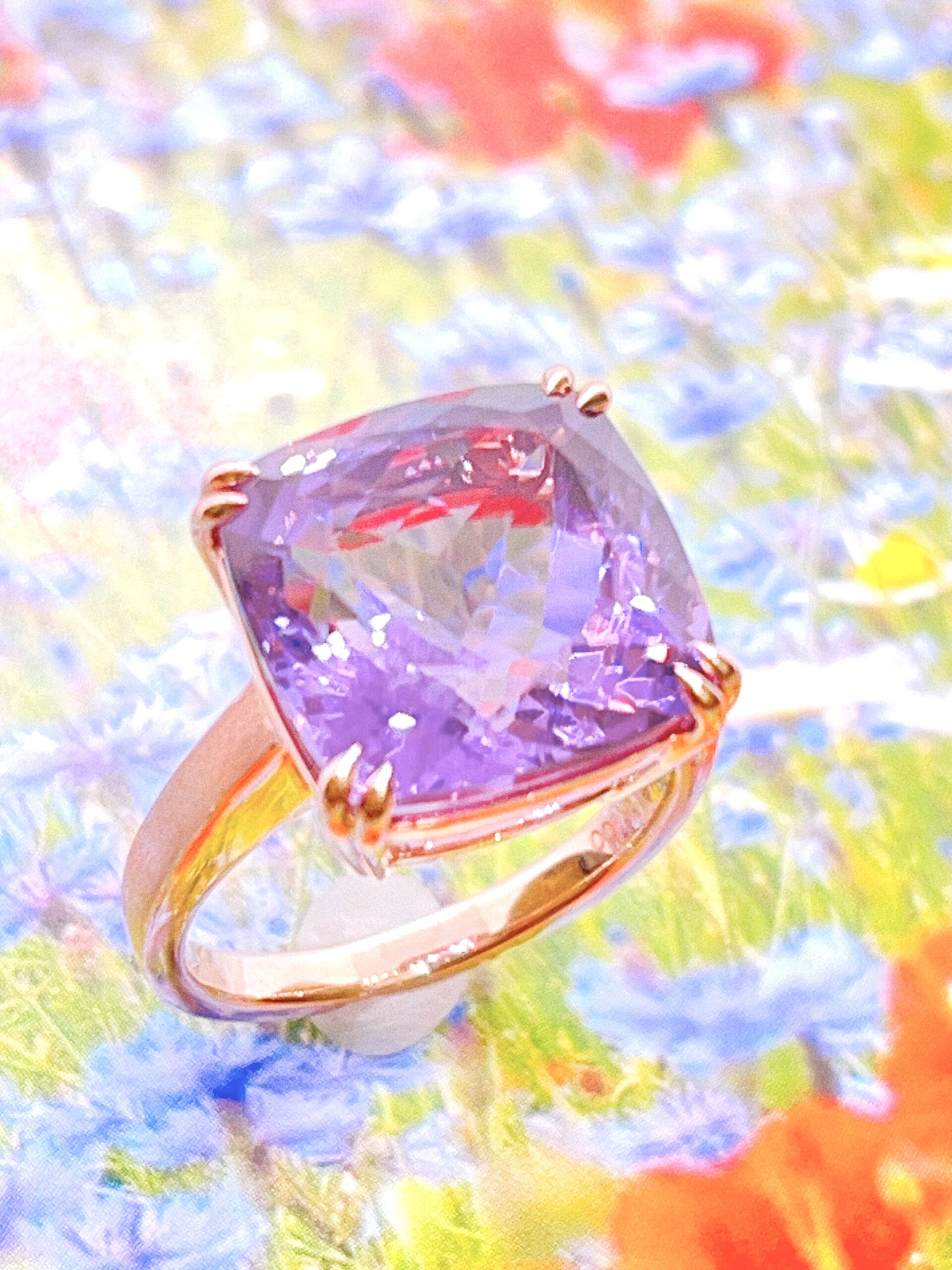 6月に開催したカラーストーンフェアはコロナもようやく明けて、やっと色石業者がタイに買い付けに行くことが出来たので沢山、良質でお値打ちなカラーストーンが入荷したフェアでした。その中の逸品「アメジスト」です。