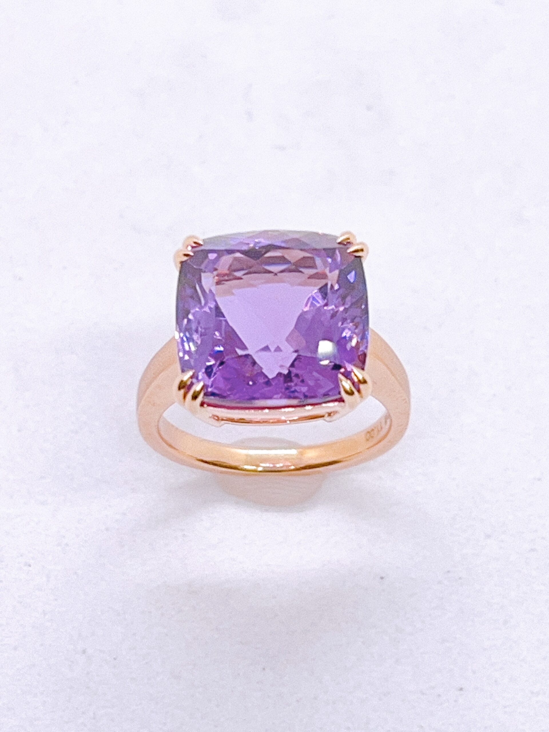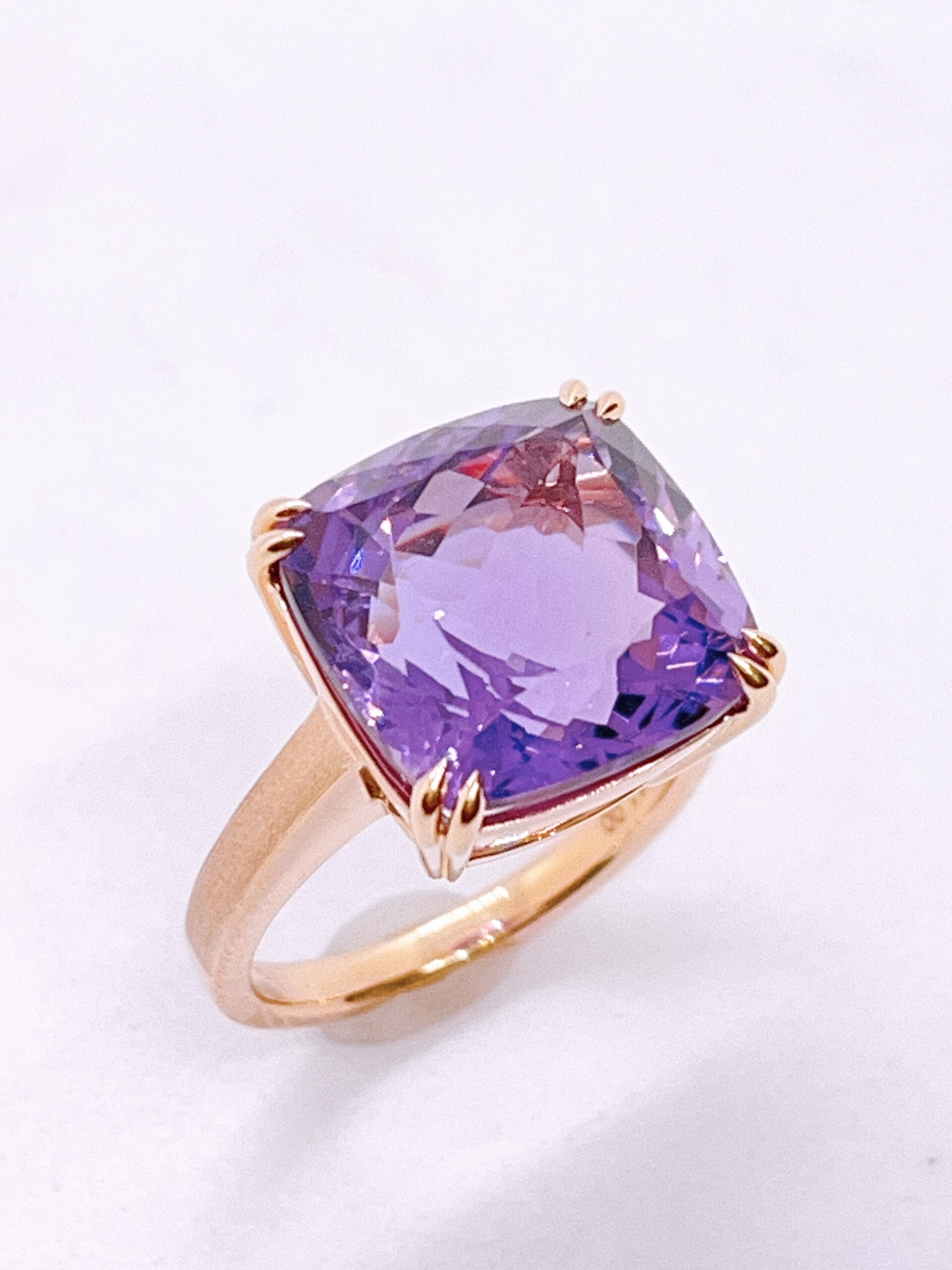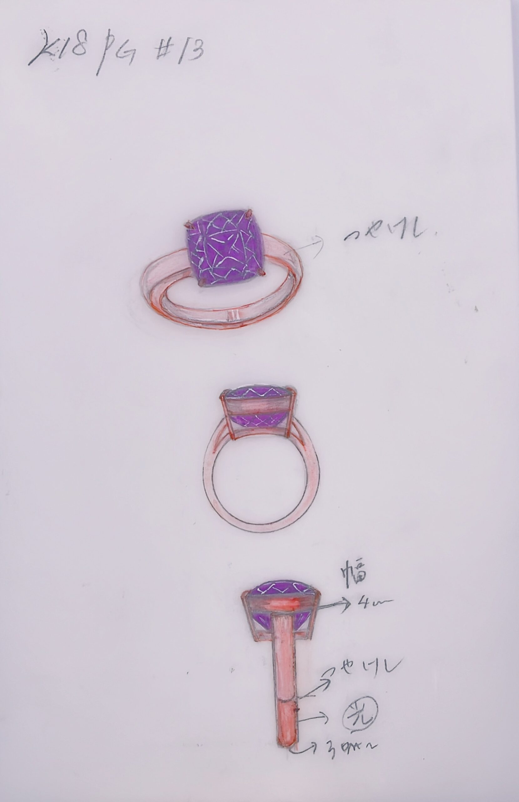お石も大きく上質なアメジストなのでシンプルなデザインのご提案をさせていただきました。素材はピンクゴールドをお選びになりました。