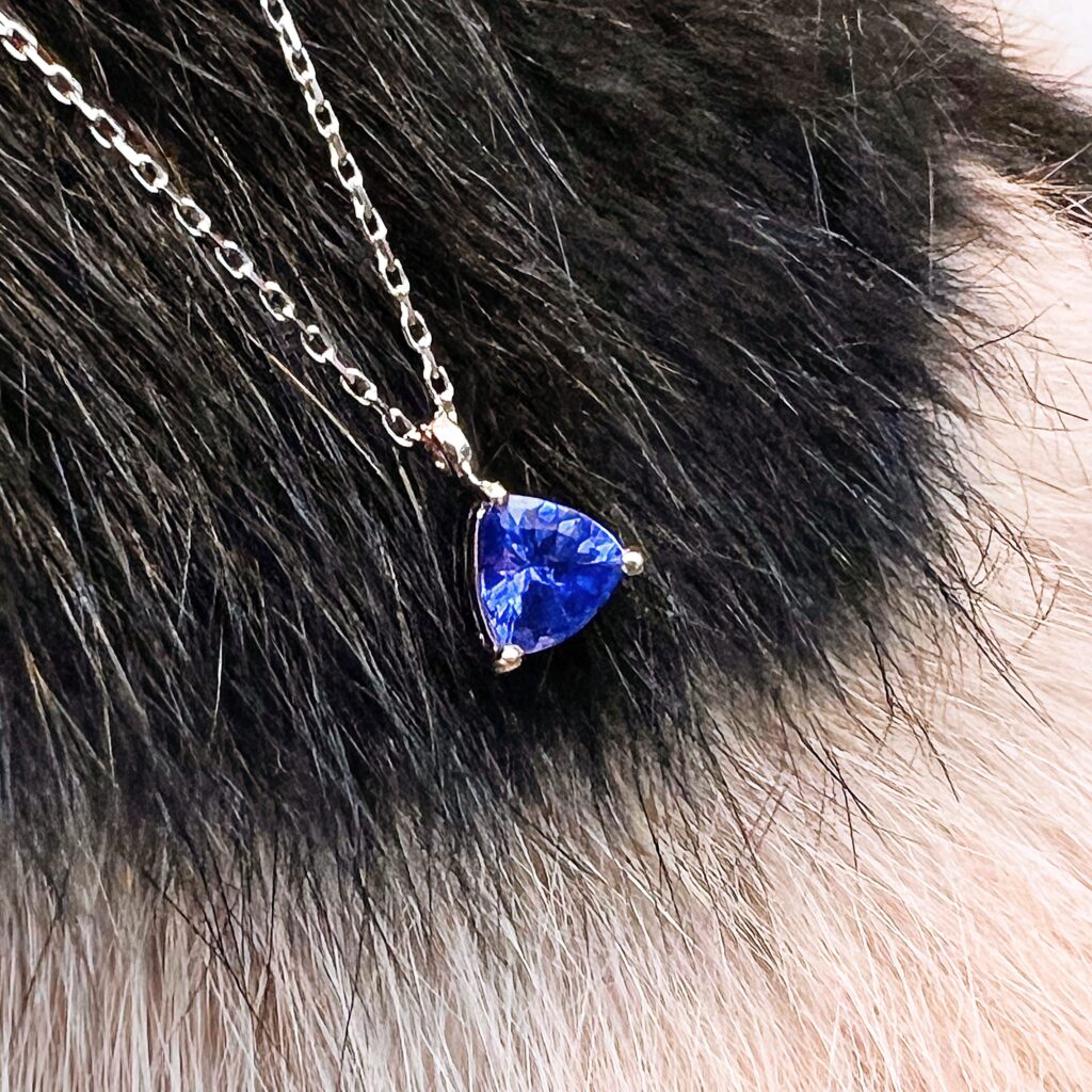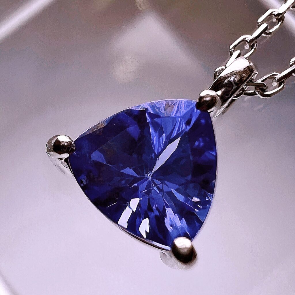 お客様お持ち込みのタンザナイトは、カットが珍しいトリリアントカットです。シンプルなデザインのリクエストでした。