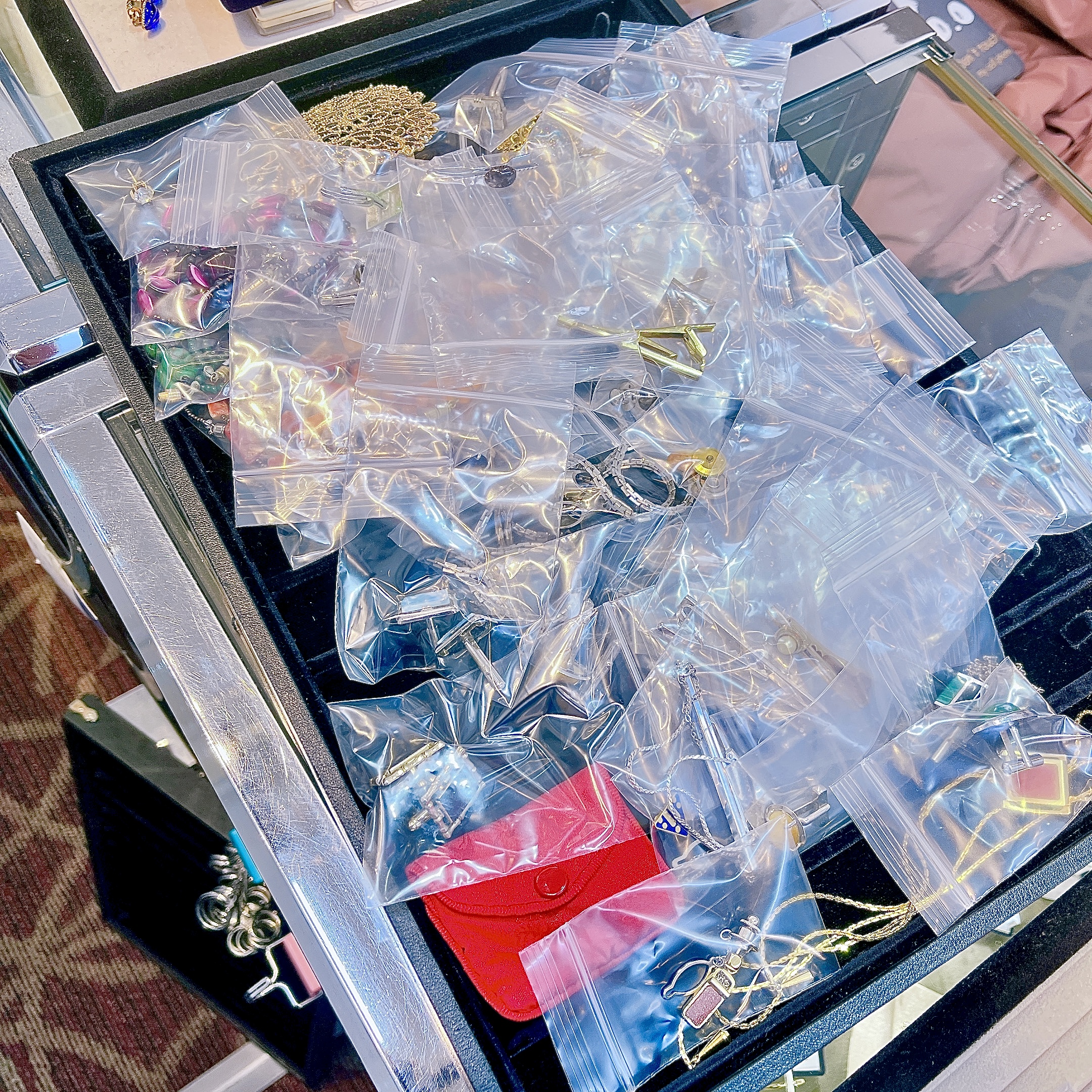 ご両親とも合わせて50個以上のアクセサリーをお持ちになっていたようで受け継がれたお客様は、どうしたらいいのか大変困っていらっしゃいました。