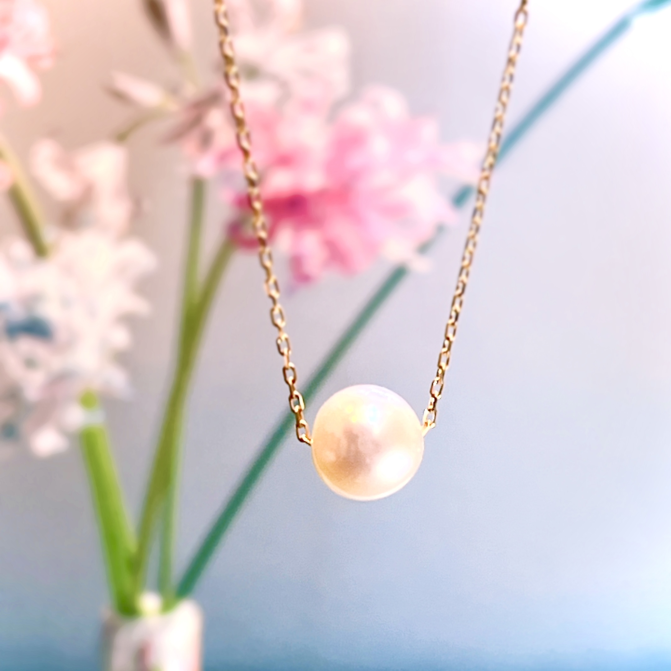 K18パールペンダント 45㎝スライドチェーン付き ¥62,700税込み