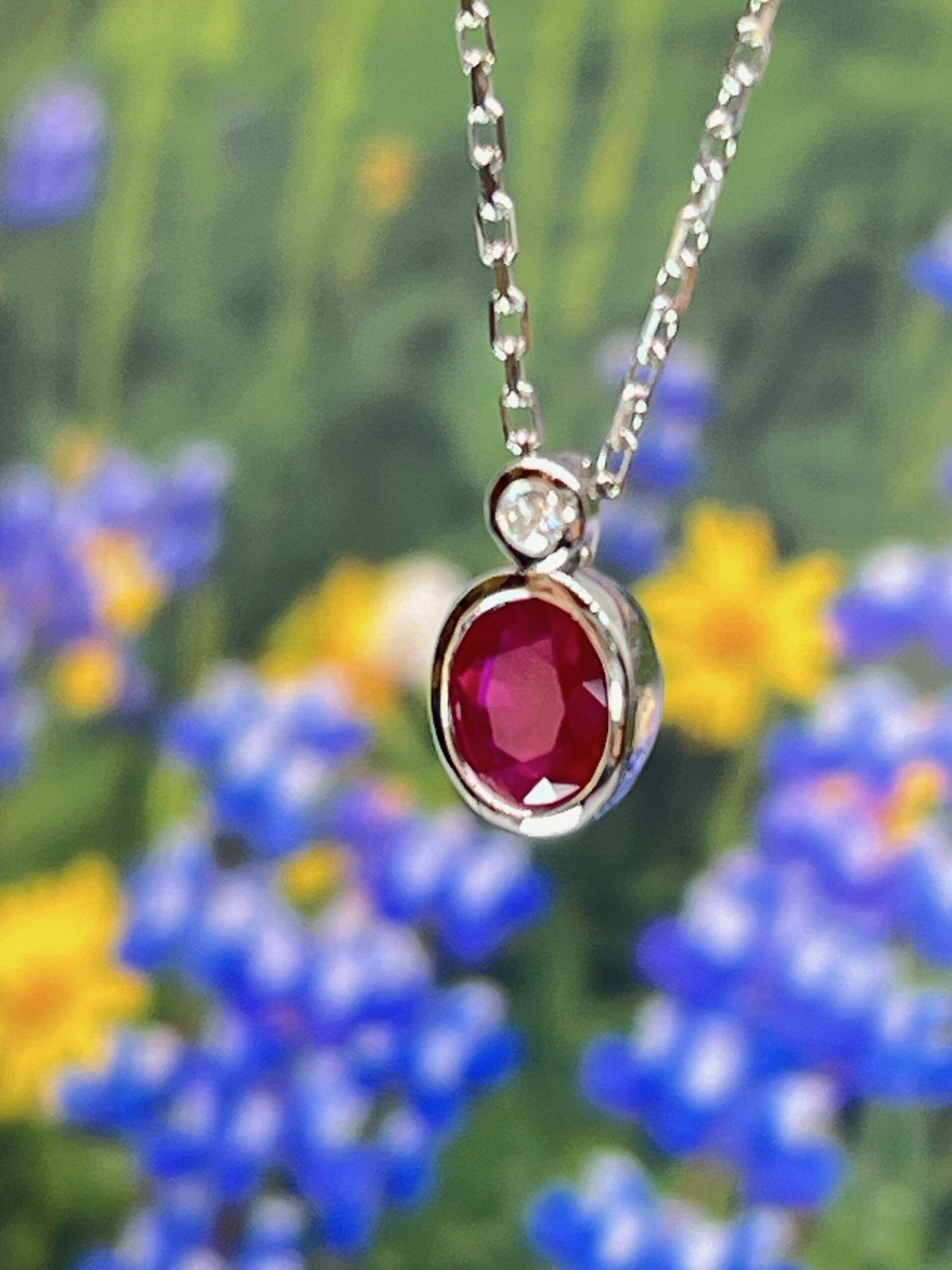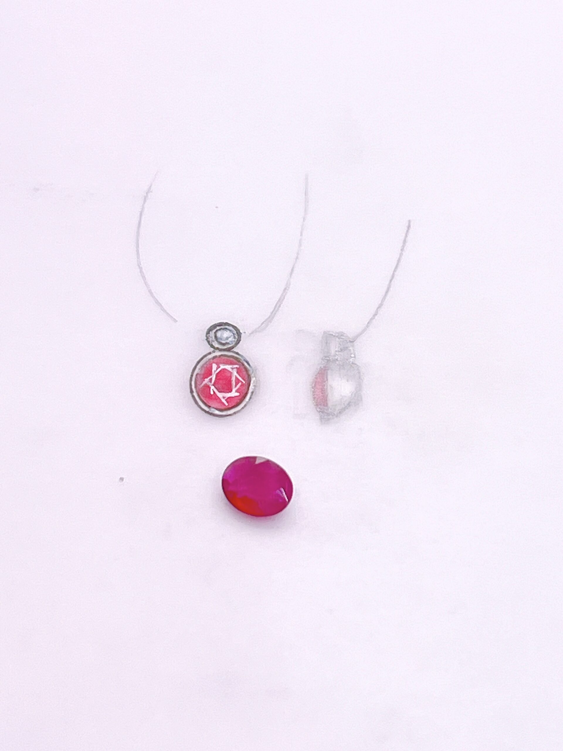 ルビーの指輪をペンダントにジュエリーリフォームしてお母様にプレゼントしたいとのご依頼でした。