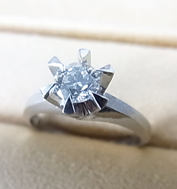 お母様の立爪ダイヤリングでございます。ご兄妹達でお母様の還暦祝いのプレゼントに、とリフォームしてペンダントにお作り替えする事になったそうです。