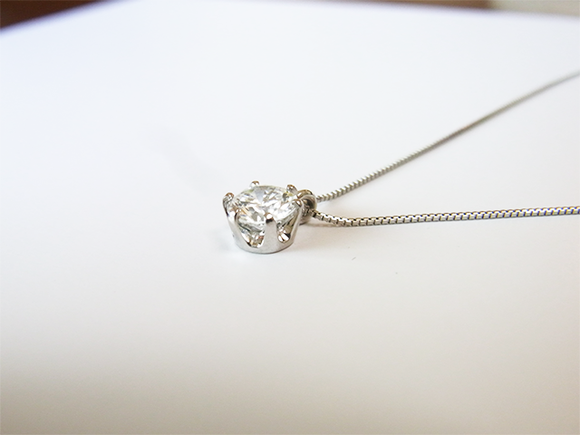 リフォームは、少しデザインが古くなった立て爪リングを、普段使いに出来るプチネックレスにお仕立てさせていただきました。