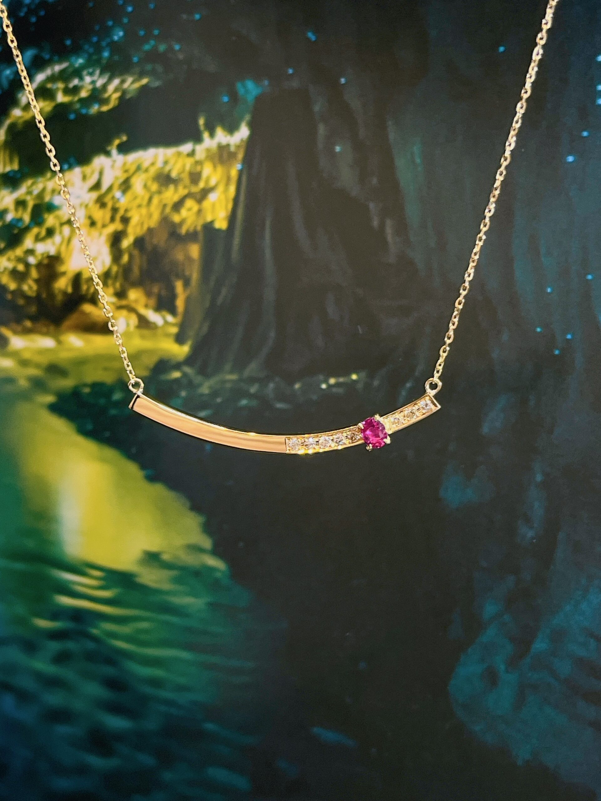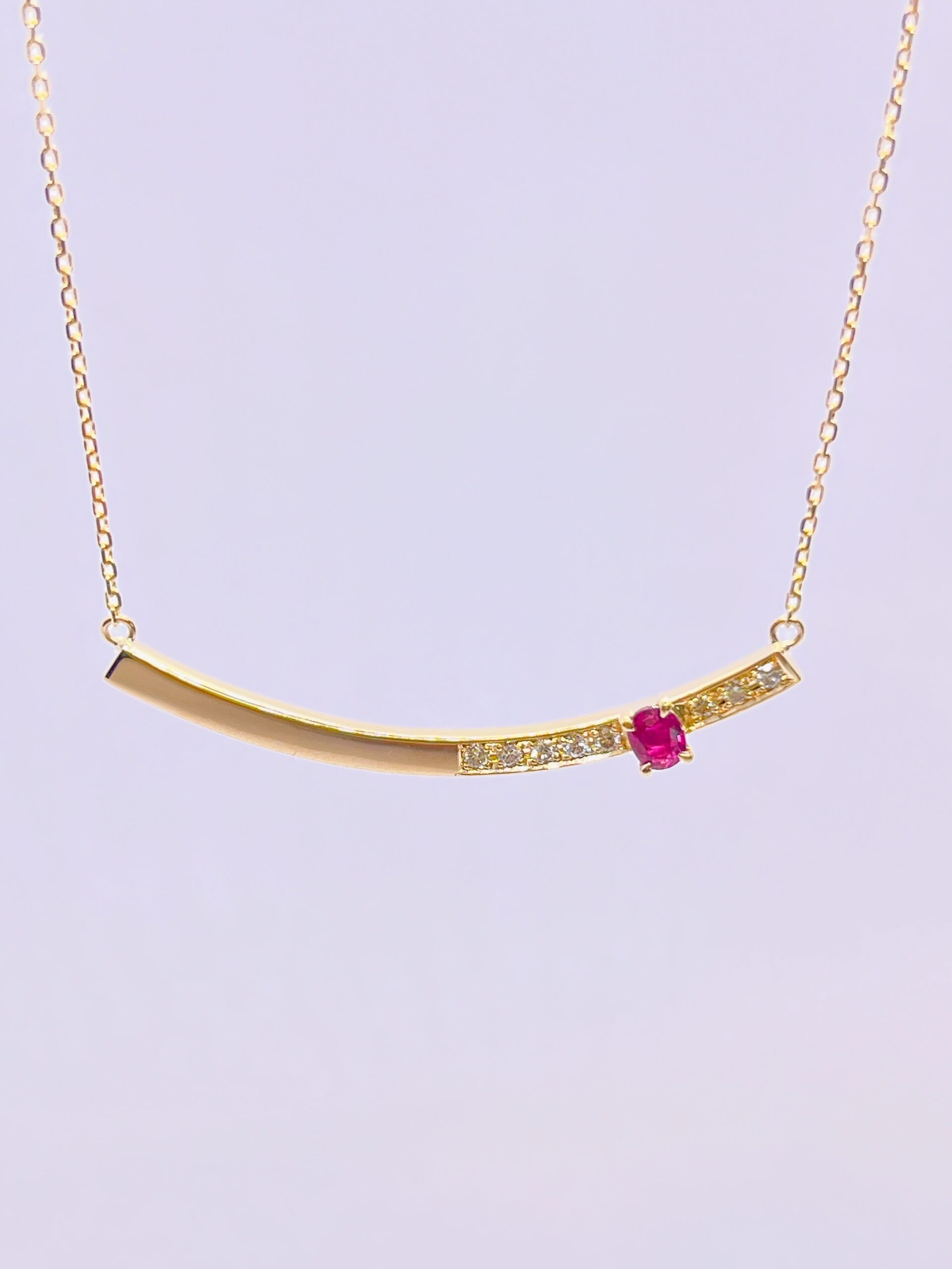お石のサイズが小さいので本当にシンプルな枠で留めてしまうとペンダントが貧相になってしまいます。そのため、シンプルでも少しボリュームがあり、それでいてカジュアルに身に着けられるデザイン案をご提案しました。周りについているダイヤモンドはリフォーム前のルビーリングの周りについていたダイヤモンドメレーです。