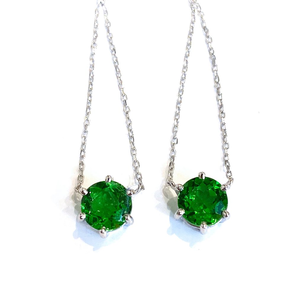 澄んだ色のモルダバイトをピアスにしました。