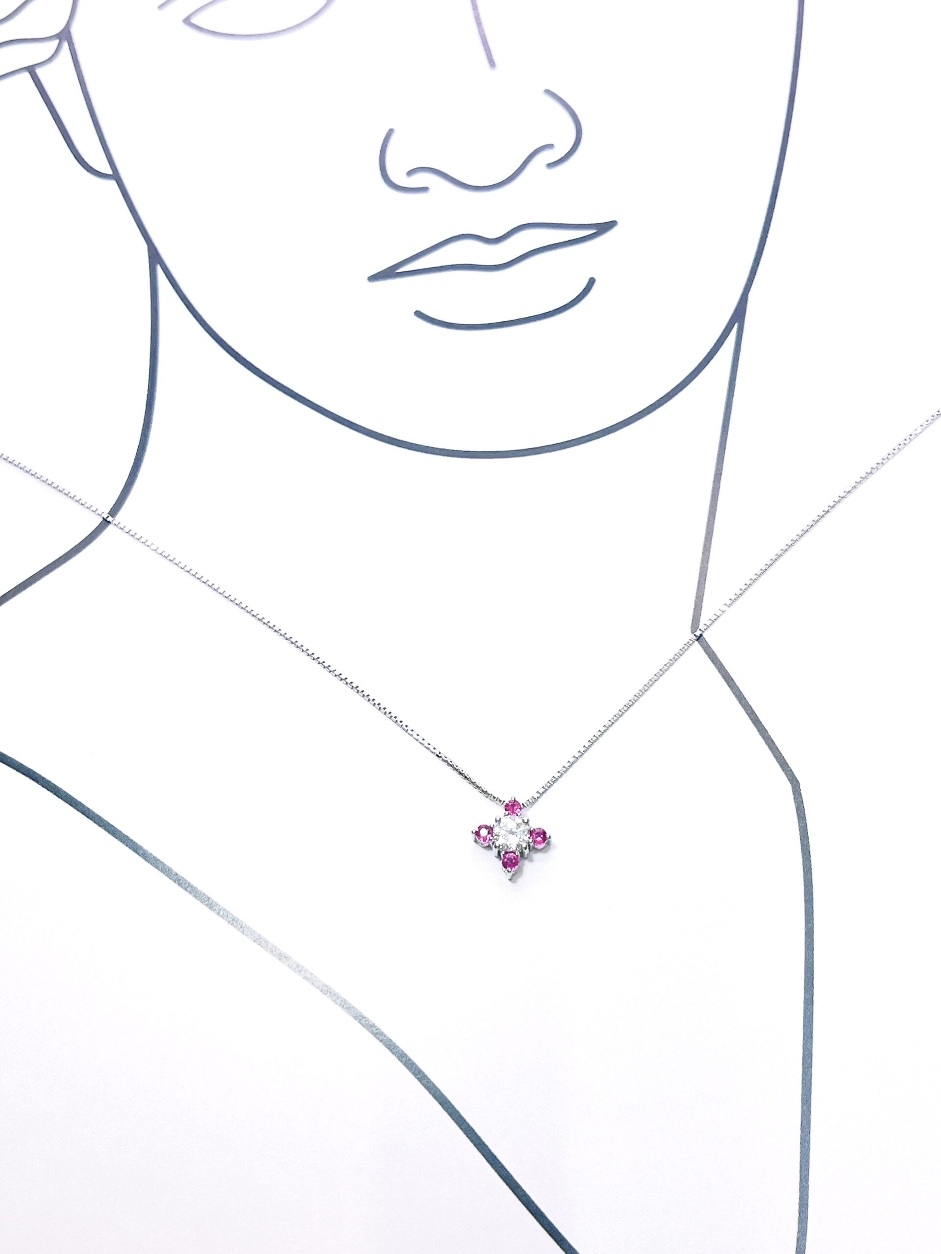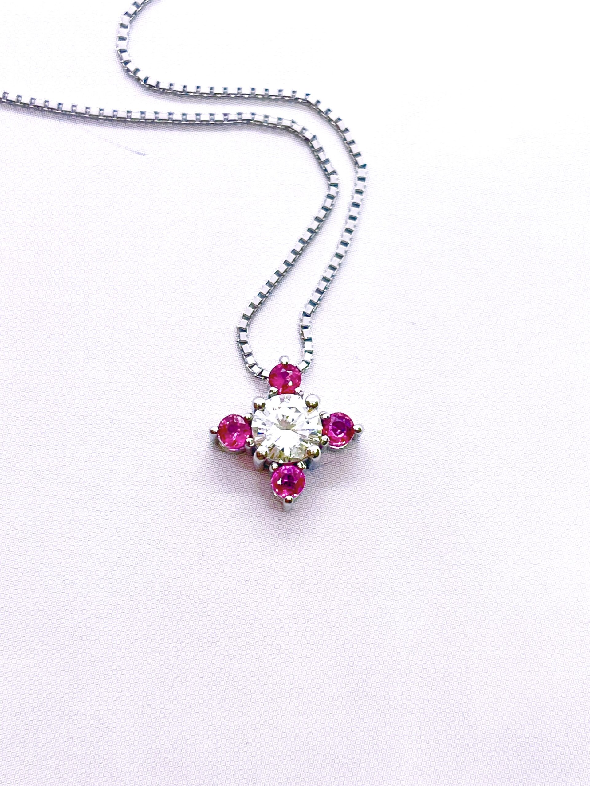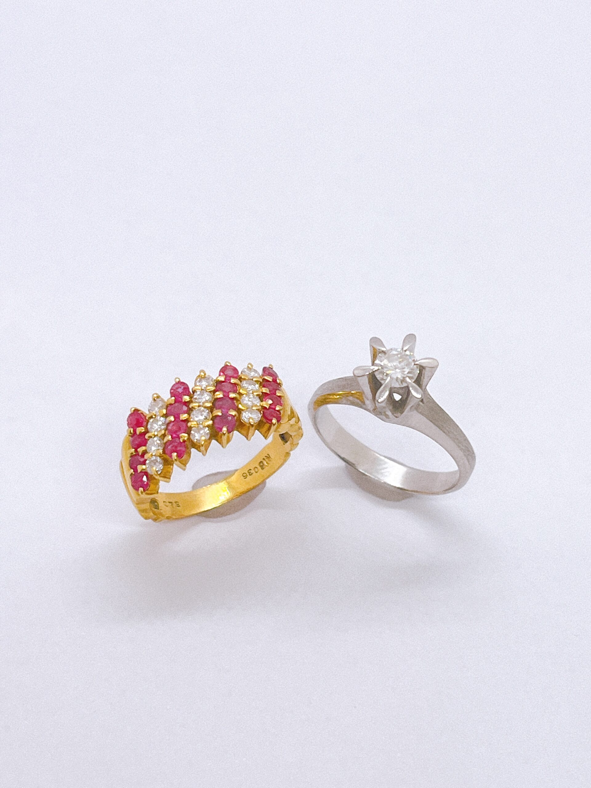 前回、ダイヤモンドハーフエタニティリングをリフォームした際に残っていたルビーを今回お持ち込みの0.3ctダイヤモンドを中心にして十文字に配置いたしました。