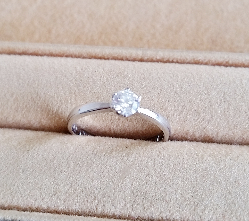 ダイヤモンドの大きさは0.3ct未満で、婚約指輪らしくきれいなダイヤモンドでしたので、