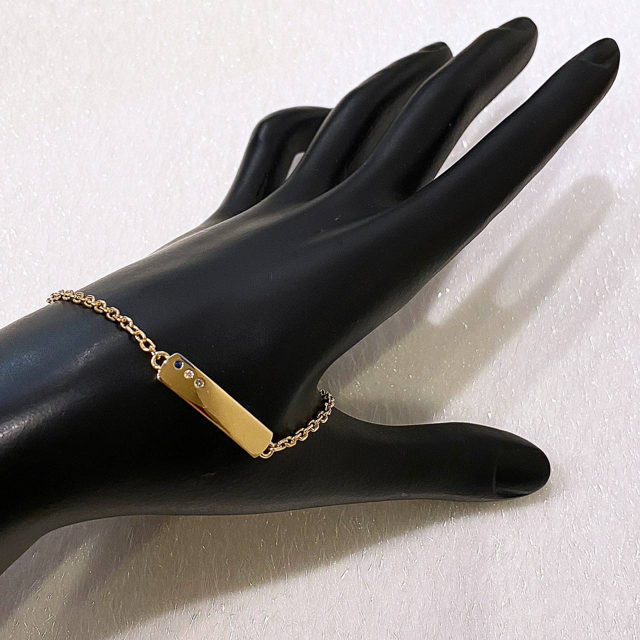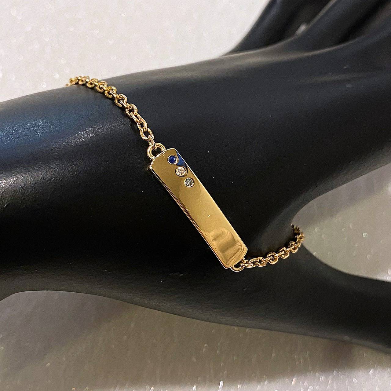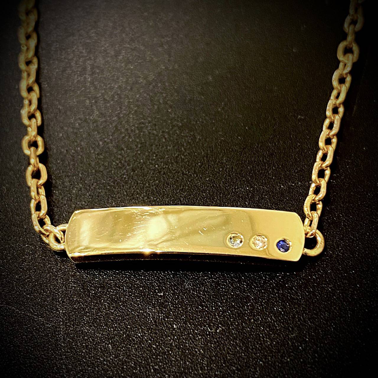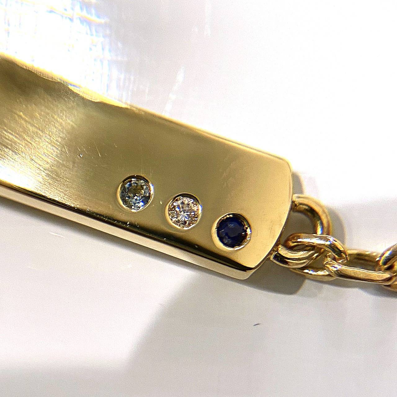 ご要望に合わせてブレスレットに仕立てました。もうすぐお子様が誕生なさるとの事でしたのでプレートを取り付けてお客様、ご主人様、そしてお子様の各誕生石を埋め込みました。これからお子様が増えて誕生石を増やしながらお使いいただければ幸いです。
