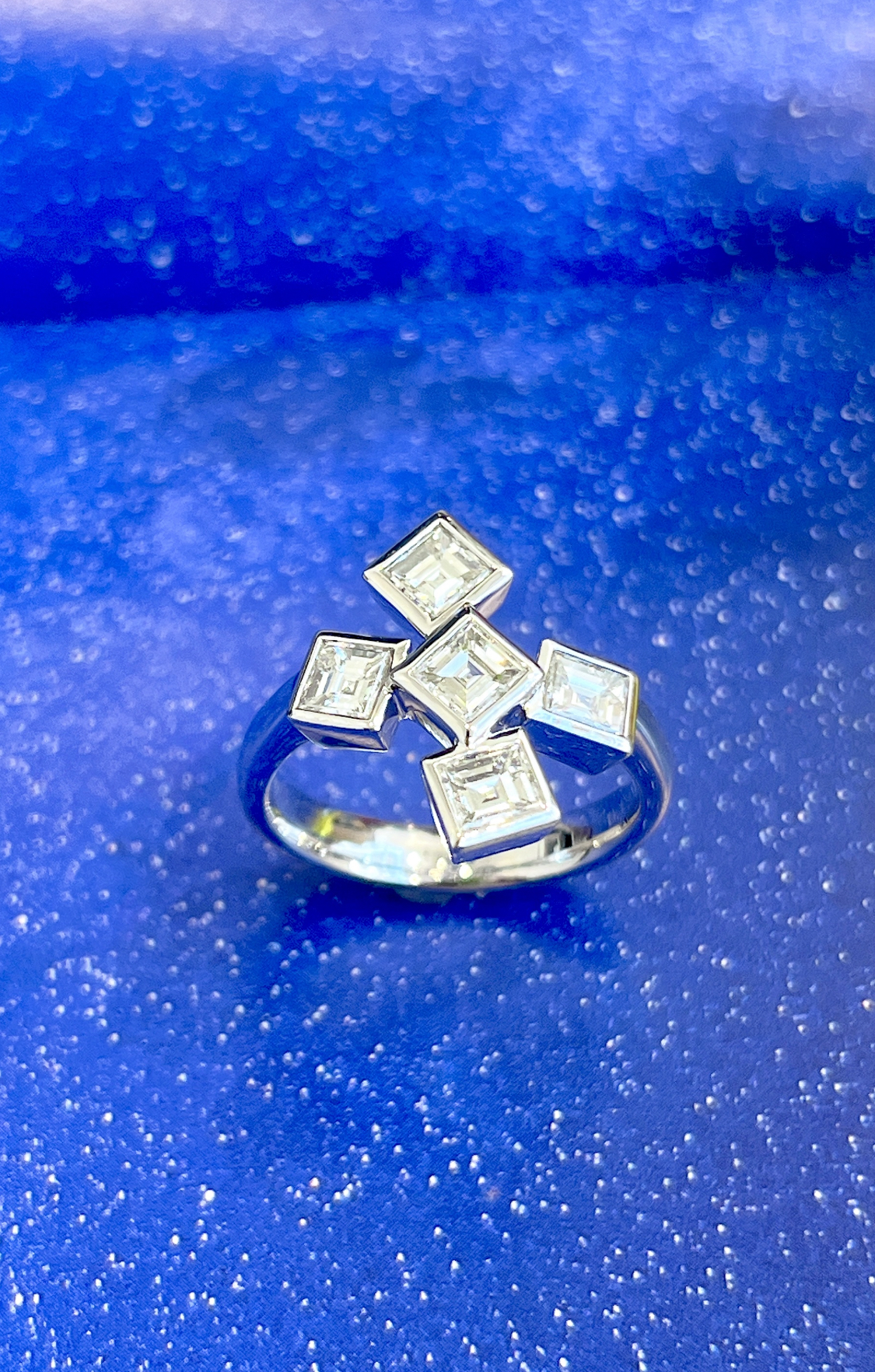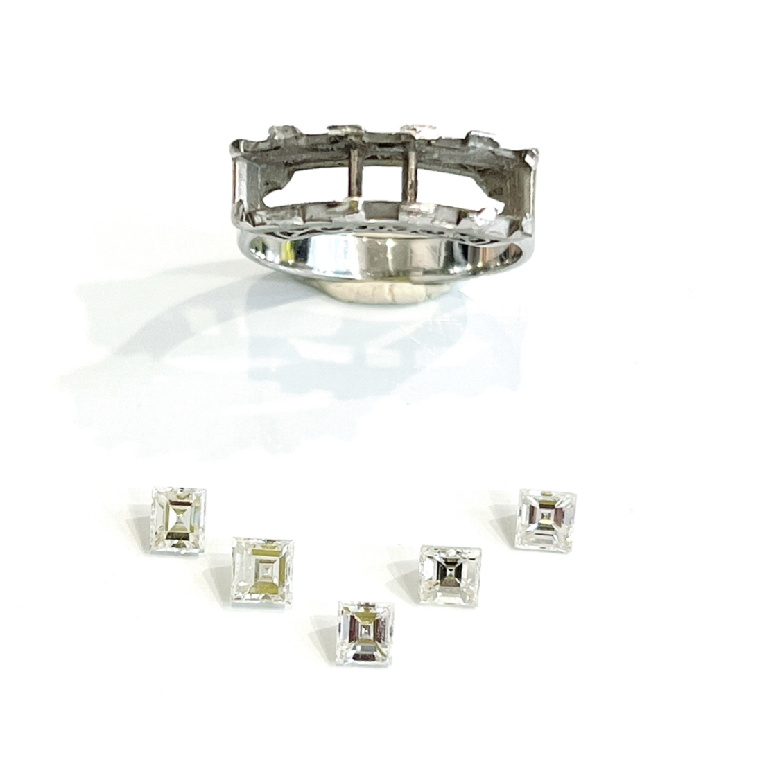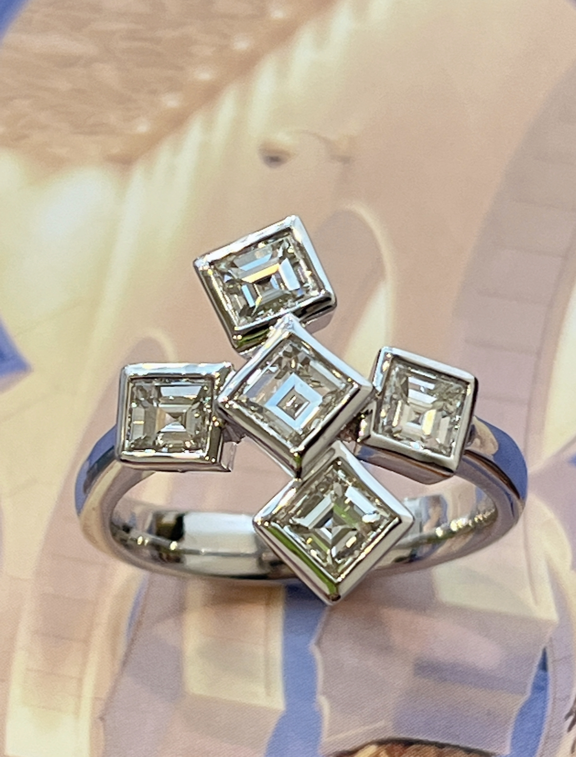 プリンセスカットダイヤモンドの一文字リングです。昔、流行りましたね。